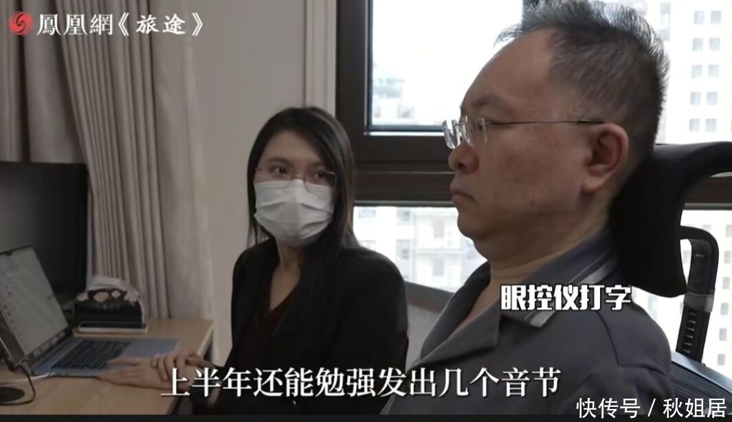 8. 在旁协助的女助理回忆起蔡磊的变化时几度哽咽。她表示,今年上半年他还勉强能发出几个模糊音节,尚可进行简单交流;但进入下半年后,声音彻底消失,完全失声。现在,他只能依靠眼动仪打字,再通过AI语音合成技术实现对外沟通。